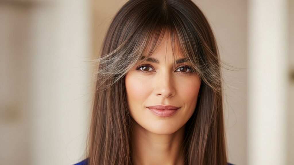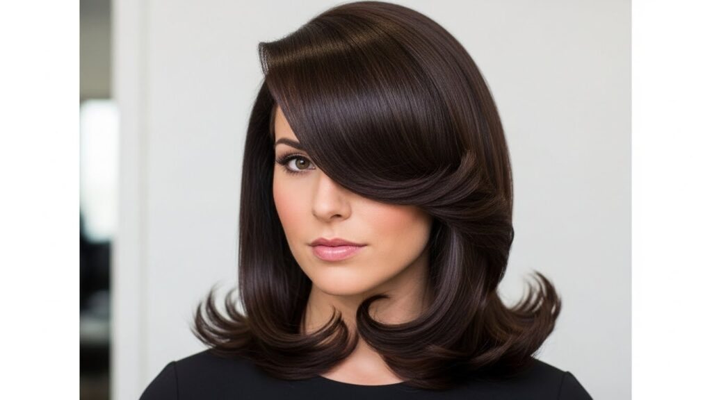 A classic for a reason. Side-swept bangs create a diagonal line that is incredibly flattering, slimming the face and adding a touch of glamour. They’re versatile, easy to style, and work with almost every face shape to create a sophisticated yet soft look.