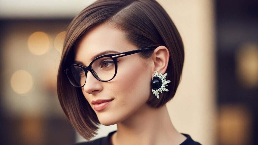 Why it works with glasses: The simplicity of the blunt bob provides a strong, sophisticated backdrop that allows your glasses to pop. It’s a look that says you are precise, confident, and stylish.