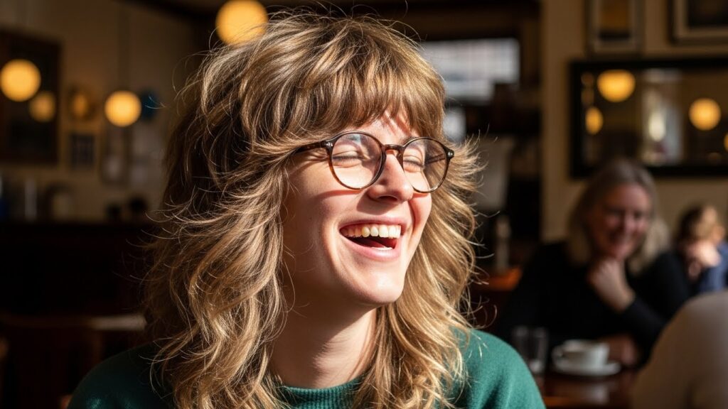 Why it works with glasses: The multiple layers of a shag prevent the hair from looking like a solid block, allowing your glasses to integrate seamlessly into the overall look. It’s effortlessly cool and perfectly imperfect.