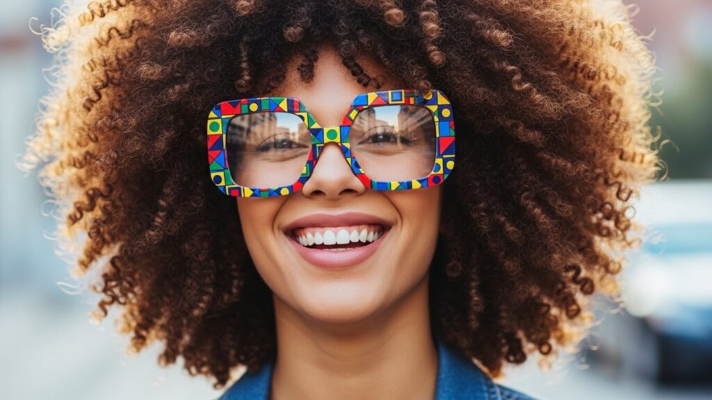 Pro Tip: Keep your curls defined and hydrated with a leave-in conditioner and curl cream. Don’t be afraid to wear bold, colorful frames that stand out against your hair.