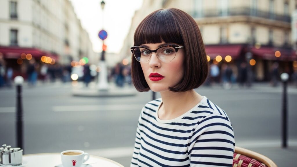 The French bob is the epitome of Parisian chic. This chin-length bob is typically paired with full, straight-across bangs that sit just above the eyebrows. It’s a look that is both nostalgic and utterly modern.