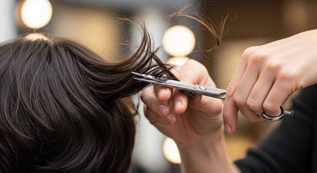 If you’re not ready to cut your length, just focus on the bangs. Taking them even shorter—think eyebrow-grazing or even shorter—immediately creates a dramatic, editorial focal point. This makes the entire haircut feel new and fashion-forward because the attention is drawn to this bold, statement-making element.