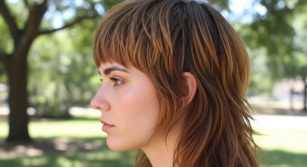 Bangs are the star of the blunt shag, but they lose their shape fast. Instead of just trimming them straight across, ask your stylist for a “bottleneck” trim. This means the very center is the shortest, curving slightly longer towards the temples. This shape follows the natural curve of your eyebrows and eyes, creating a more flattering and modern frame that grows out beautifully.