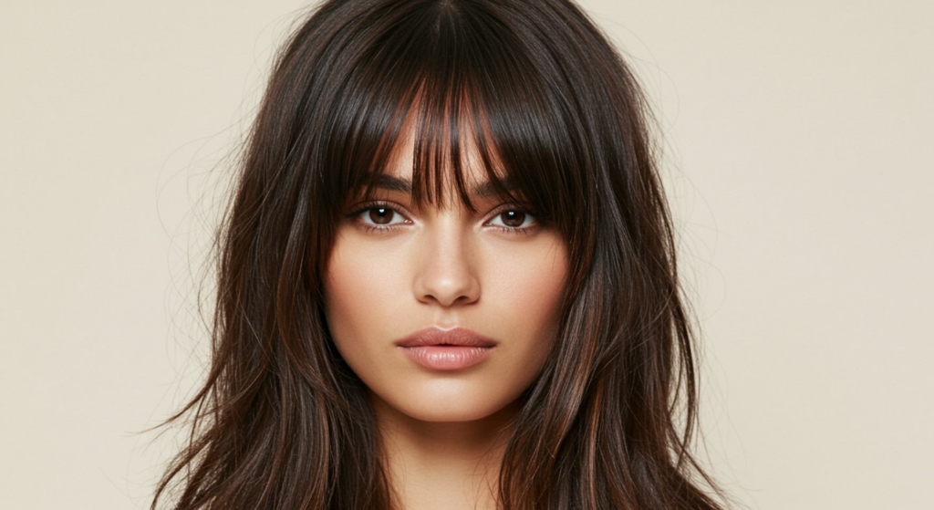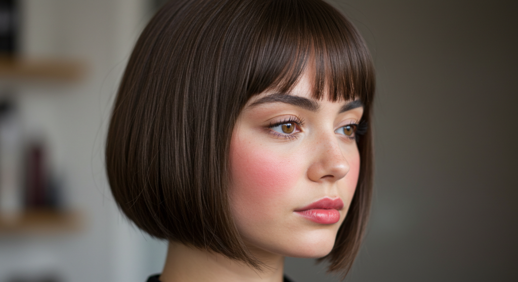 A blunt bob paired with sharp bangs is a timeless choice that exudes confidence. This sleek and polished look is ideal for those who love a structured, no-fuss style. It’s especially flattering for oval and heart-shaped faces.