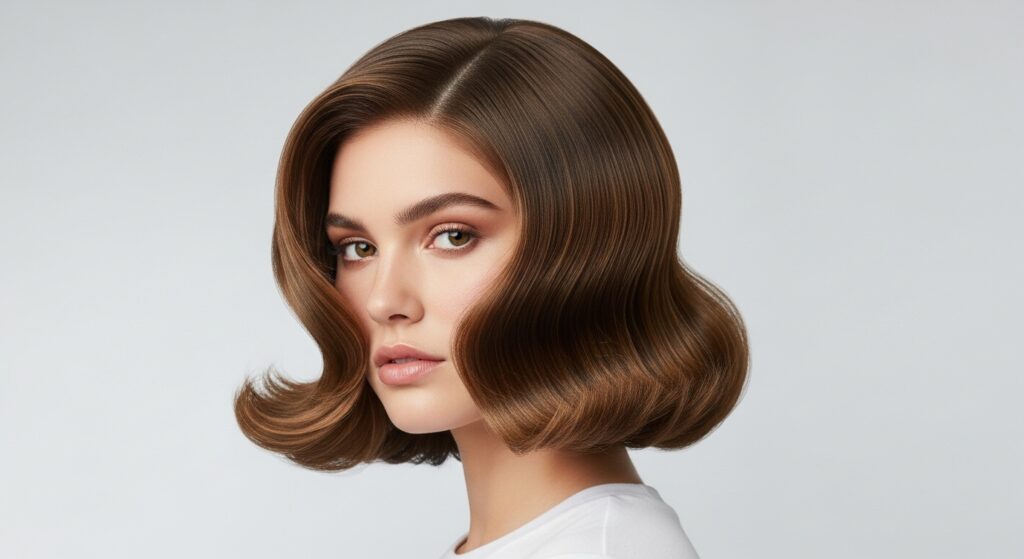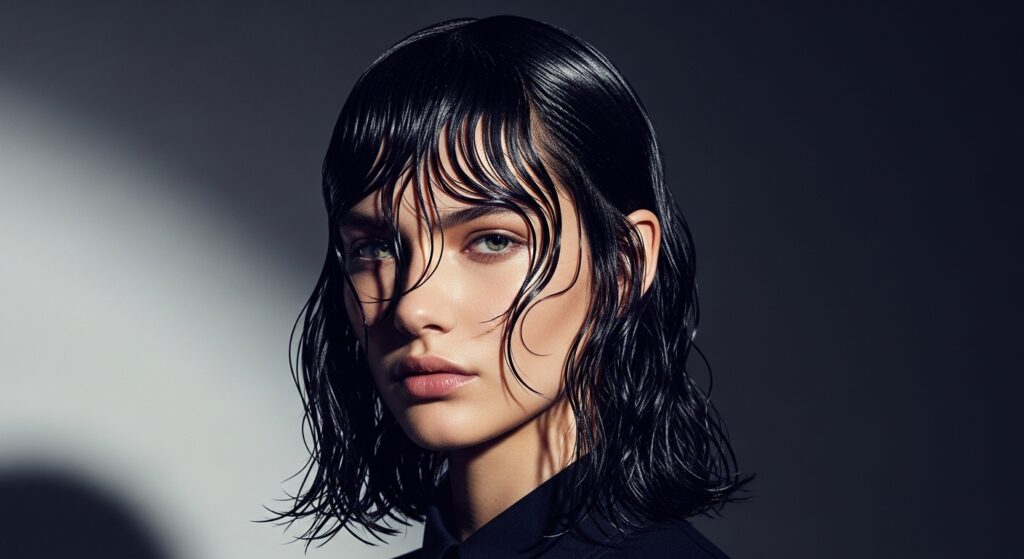 Embracing the “clean girl” aesthetic, the glass hair lob is all about supreme shine and sleekness. This trend involves a sharp, often blunt lob with a deep center part and waves that are so smooth and glossy they look like glass. The key is in the health and reflectiveness of the hair.