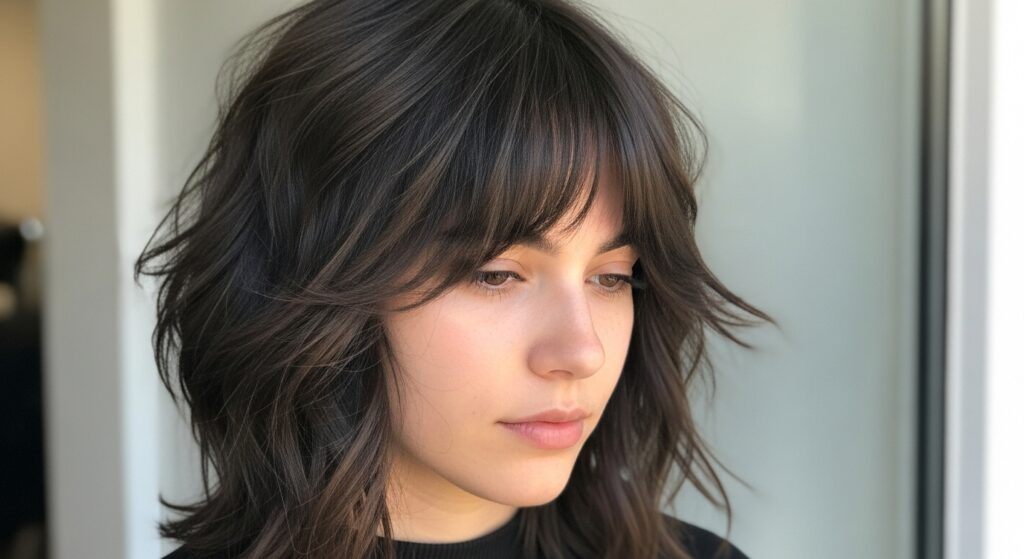 If you’re craving texture and a touch of rock ‘n’ roll edge, the shaggy wavy lob is your answer. This style is all about choppy layers, curtain bangs, and a whole lot of attitude. The layers are cut to frame the face and create volume at the crown, while the waves are more piece-y and separated than in the classic version. It’s a low-maintenance look that thrives on a bit of messiness.