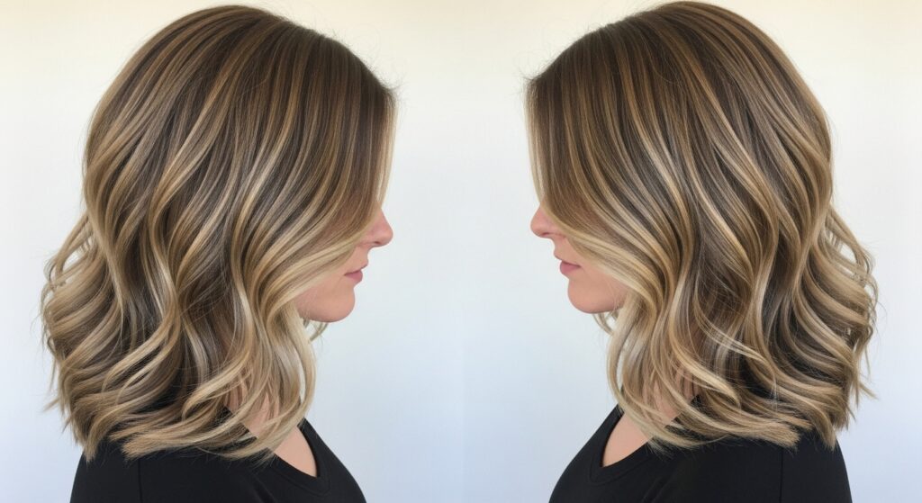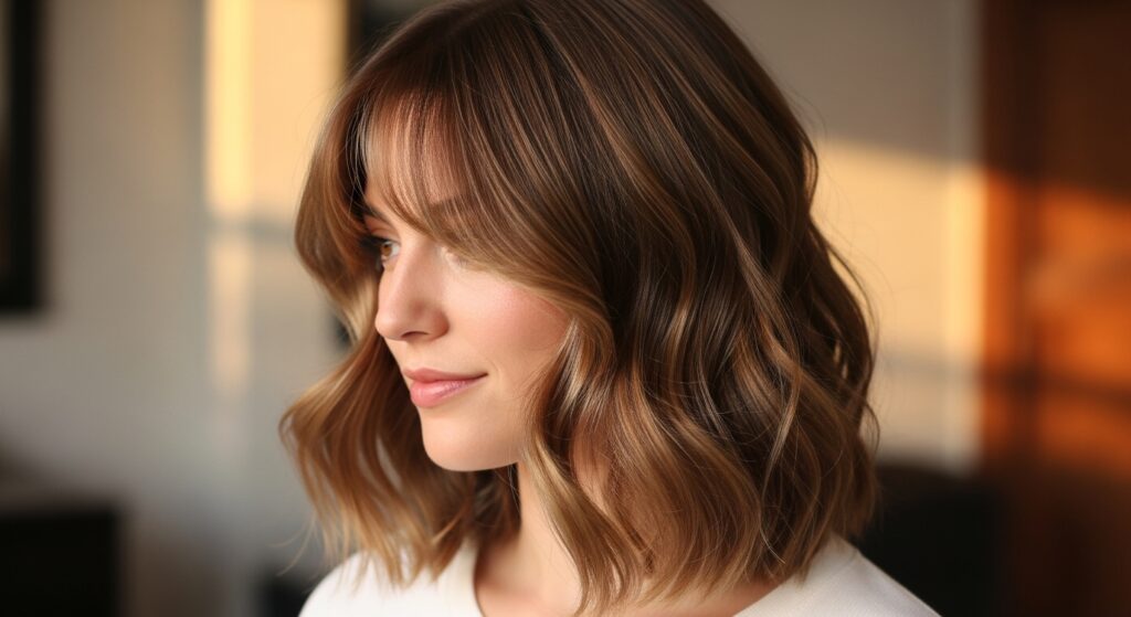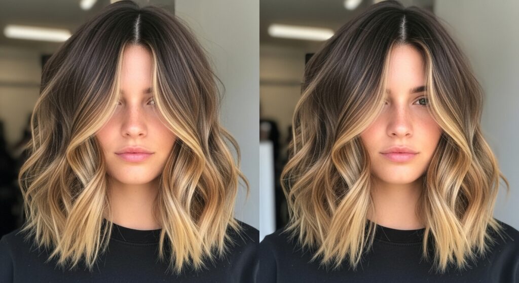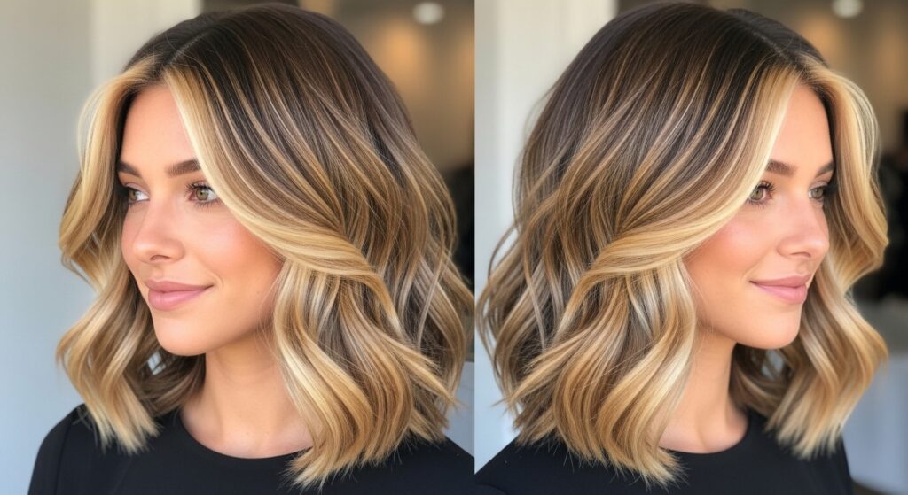 Money piece highlights are those strategic, brightened sections around the face that instantly illuminate your complexion. When applied to a wavy lob, they create a stunning, sun-kissed effect that makes the waves pop with dimension. The highlights catch the light with every movement, making your hair look vibrant and full of life.