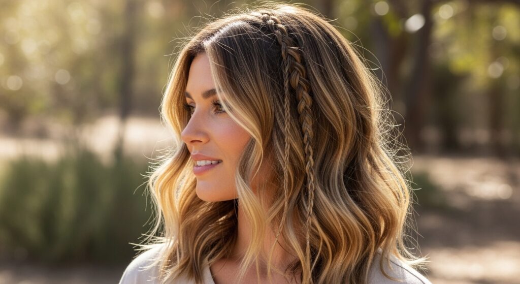 Who says lobs can’t be playful? The boho wavy lob incorporates small, delicate braids into the wavy texture. Think a single milkmaid braid along the crown, a few small braids woven into the waves, or tiny braids used to pull back the front sections. This adds a festival-ready, whimsical element to your everyday look.