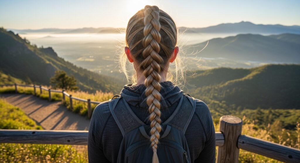 The Classic French Braid: A timeless choice that keeps every strand in place. Perfect for long hikes, windy days, or when you just don’t want to think about your hair. Master this one, and you’re set for life.