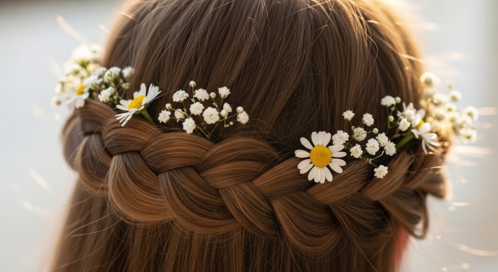 The Crown Braid with Fresh Flowers