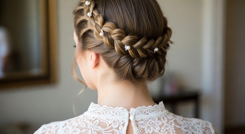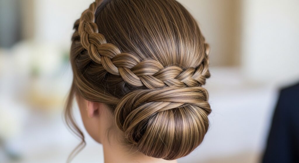 For the ultimate secure updo, combine styles. Create a crown braid that starts at one temple and goes around your head. Instead of tucking the end under, use it to form a small, low bun at your nape.