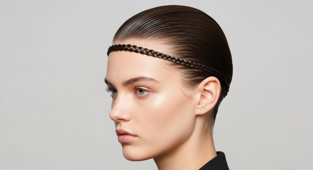 For a contemporary take, think minimal. Create one very thin, delicate braid. Instead of wrapping it fully around, just pin it across the top of your head from one side to the other, pairing it with sleek, slicked-back hair.