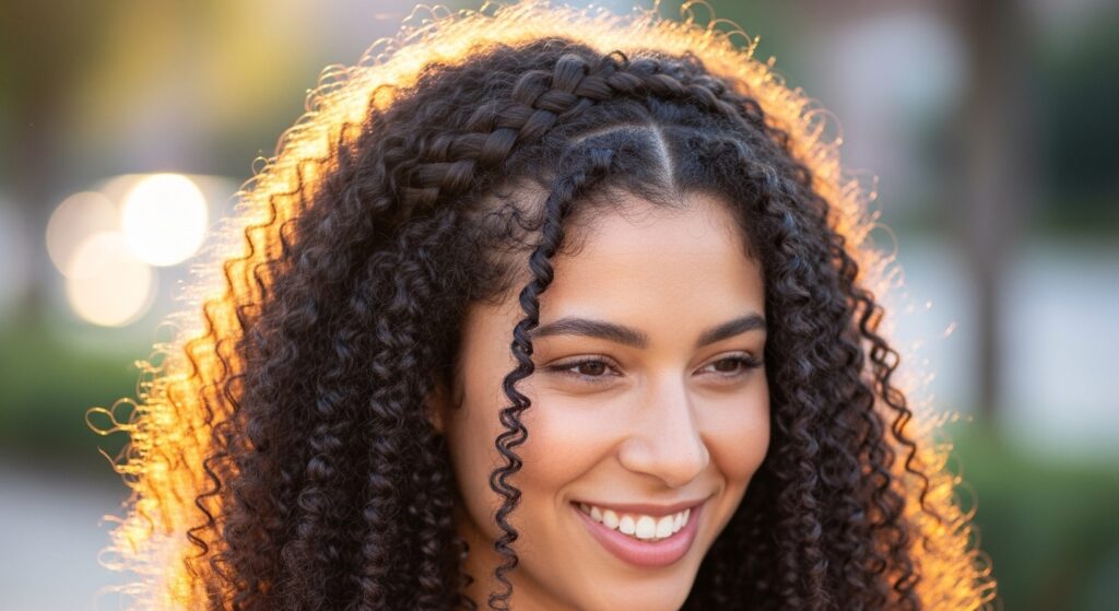 As your hair dries, the braid will gain incredible volume and texture. This style protects your curls while looking absolutely celebratory. It’s a beautiful way to wear your crown, literally.