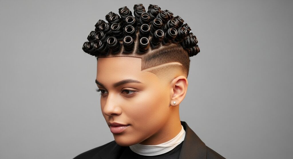 Short hair deserves definition too! This style is iconic on tapered cuts, fades, and TWA’s (Teeny Weeny Afros). The hair is finger coiled all over, often with smaller sections for tight definition. The coils stand proud, creating a full, textured, and incredibly defined crown that contrasts beautifully with faded or shaved sides. It’s a powerful, confident look.