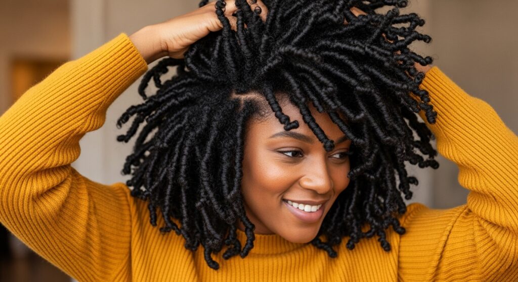 Why not have the best of both worlds? This playful style involves finger coiling only the top or crown section of your hair, while leaving the bottom in its natural state or styled differently. Pull the coiled top section into a half-up style. This creates beautiful texture contrast—defined, intricate coils on top with softer, looser hair below. It’s a perfect way to add interest and keep hair off your face.