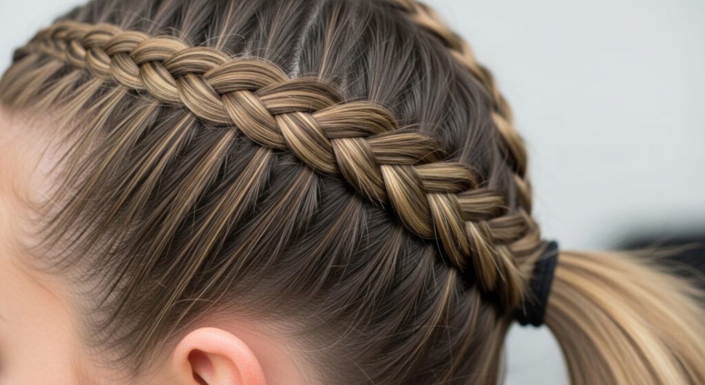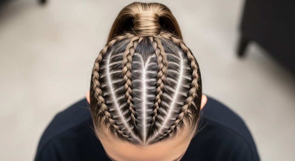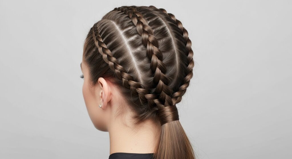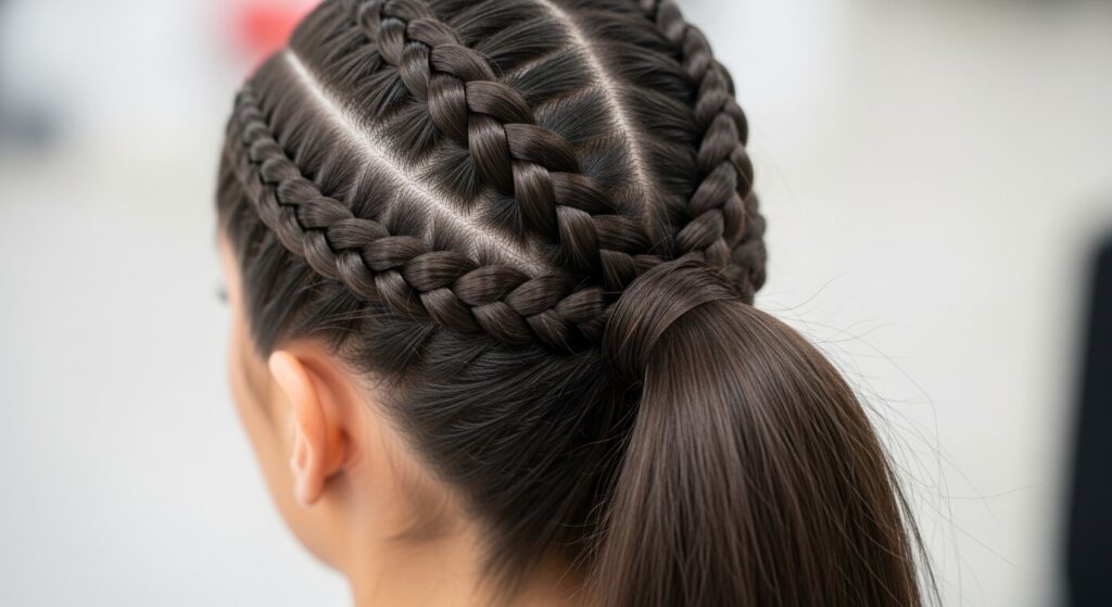 Take the double braid idea one step further. Create three small, parallel French or Dutch braids along the top section of your head. Align them neatly, then gather them, along with the unbraided hair, into a sleek, high ponytail. This look is structured, fashion-forward, and perfect for thick hair that can handle multiple detailed elements.