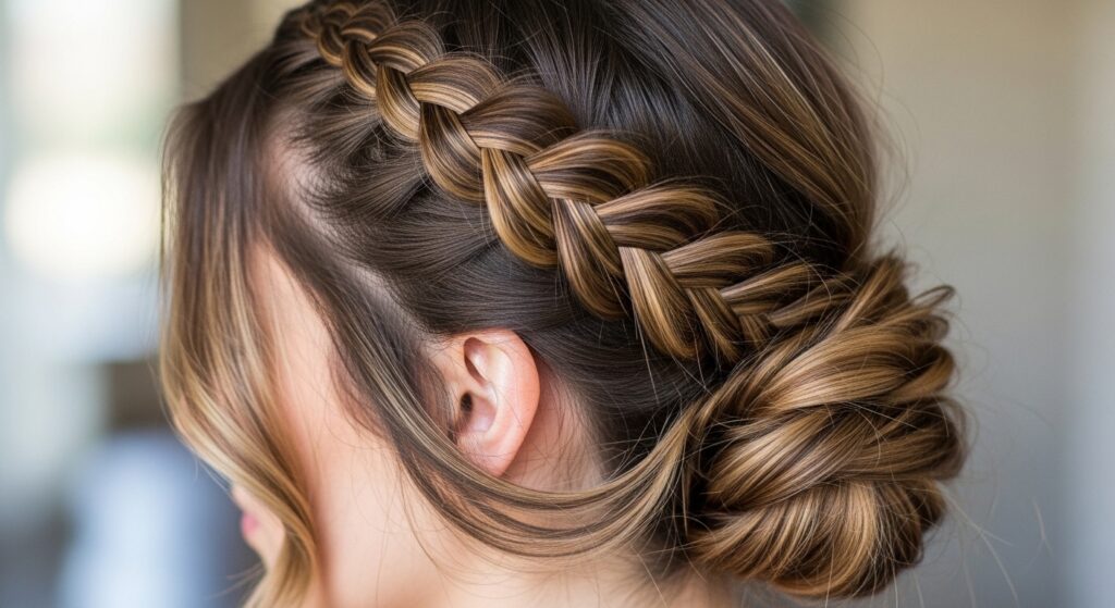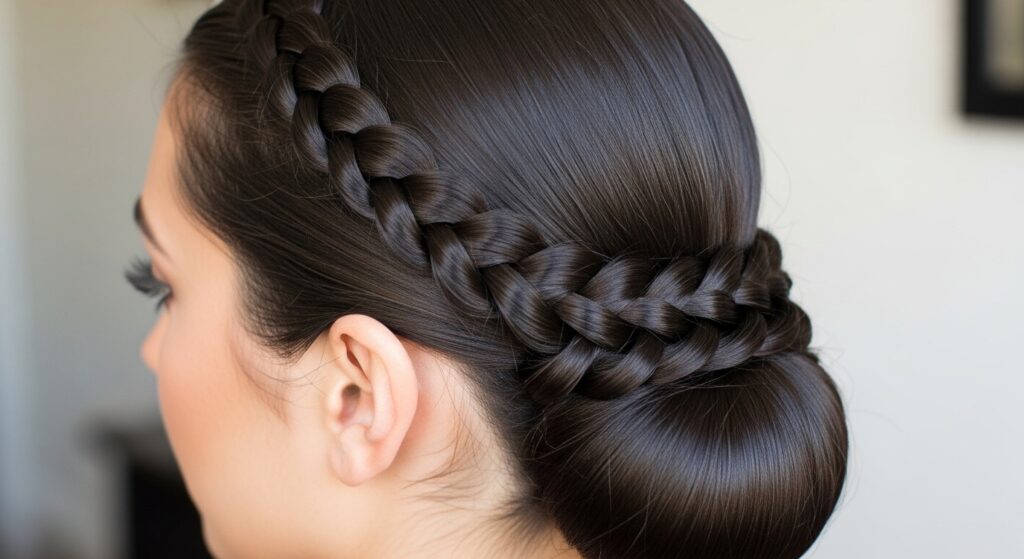 16. The Elegant Updo: Braided Ponytail Twisted into a Bun