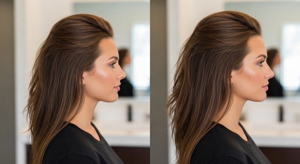 While side volume is crucial, don’t neglect the crown. Height at the top of your head shortens the overall appearance of your face. Use a volumizing spray at the roots and blow-dry your hair upside down or with a round brush for lift.
