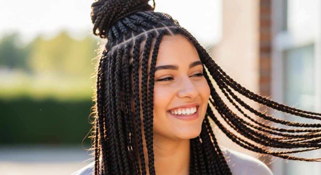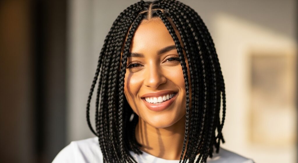You can never go wrong with the timeless classic. Jumbo box braids offer a clean, geometric look that’s both chic and low-maintenance. Opt for a middle part or a deep side part for instant elegance. Because they’re so thick, they make a statement while being incredibly quick to install compared to their smaller counterparts.