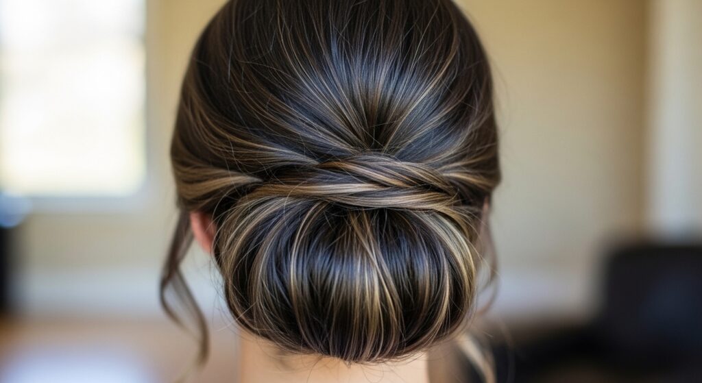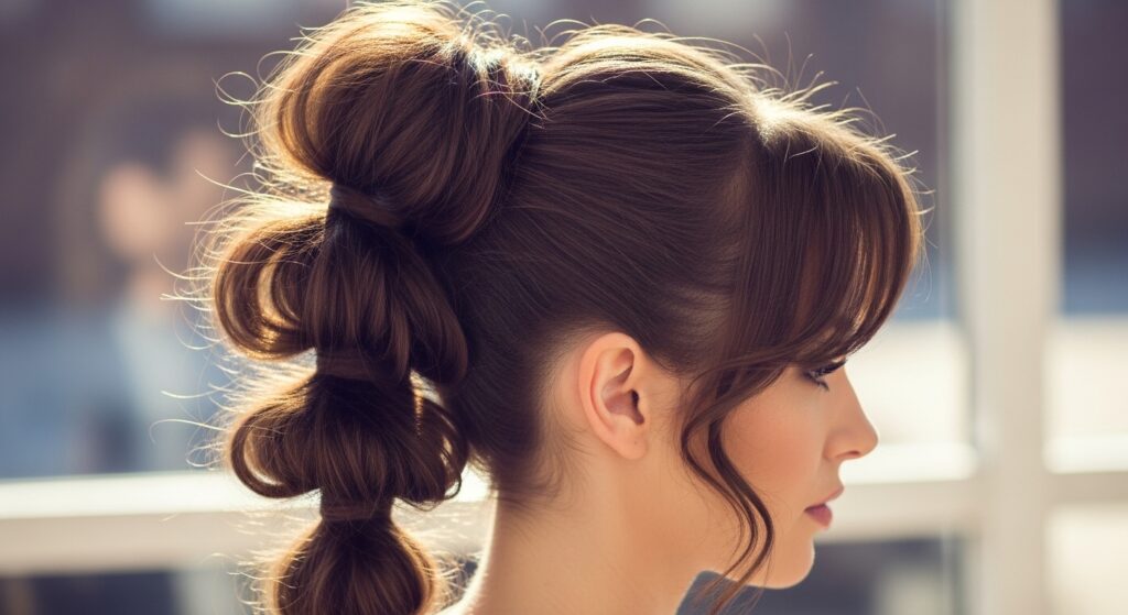 This style is ideal for day-old hair or naturally wavy textures. Apply a texturizing spray for grip. Gather your hair into a mid-high, loose ponytail—avoid making it tight. Perform the pull-through, but keep everything deliberately messy. Pull out face-framing pieces and gently tug at the sides of the loop to loosen it. The goal is effortless, I-just-woke-up-like-this volume.