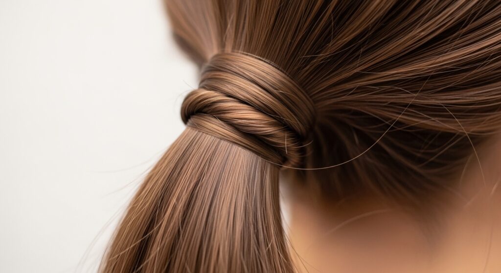 After creating your classic pulled-through ponytail, take a small section of the tail and wrap it around the base to conceal the hair tie. Secure it with a bobby pin underneath. This adds a finished, salon-quality look and makes the style appear even more intricate.