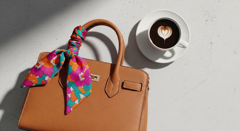 Your scrunchie’s versatility extends beyond your hair. Tie a favorite scrunchie around the strap of your handbag, tote, or backpack. It’s a quick, personal, and changeable way to accessorize your bag. Plus, it’s always there if you need a quick hair fix on the go. It’s the ultimate functional fashion hack.