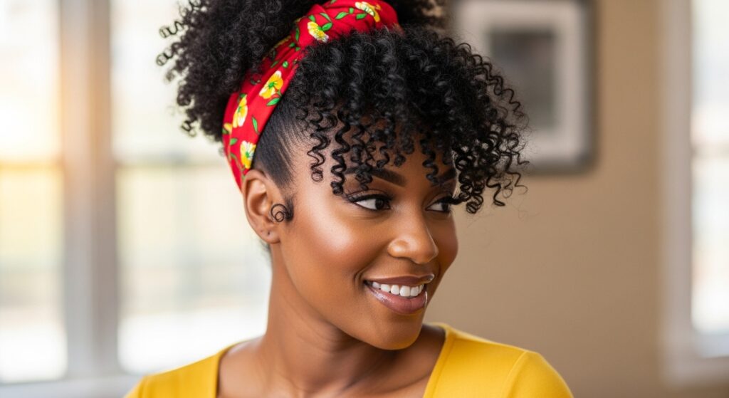 No more pinching elastic headbands! Take a large, stretchy scrunchie and wear it as a headband. You can place it right at your hairline for a bohemian vibe or push it back slightly over your crown for a sporty look. This works beautifully to keep flyaways at bay or to add a colorful accent to straight, wavy, or curly hair. It’s incredibly gentle and won’t give you a headache.
