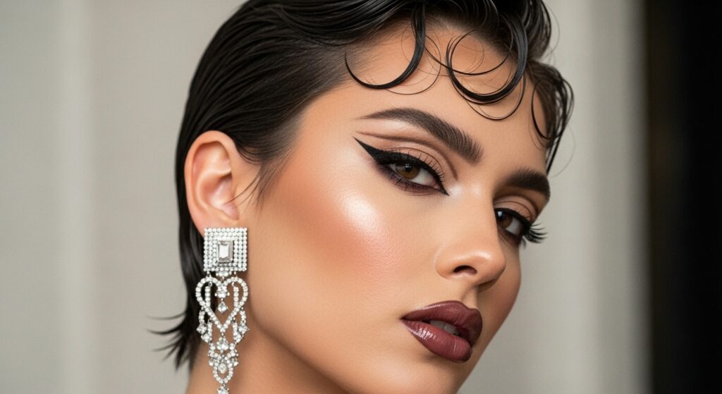 Who it’s for: Anyone with a pixie or very short cut looking for a glamorous, evening-appropriate style. It emphasizes facial features and bone structure beautifully.