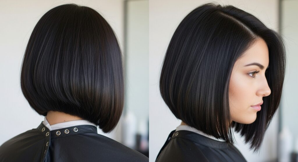 Characterized by its graduated shape, the A-line bob is shorter in the back and gradually lengthens towards the front. This creates a beautiful, face-framing effect that is both classic and slimming. It’s a precision cut that always looks polished and put-together, offering a graceful neckline in the back.