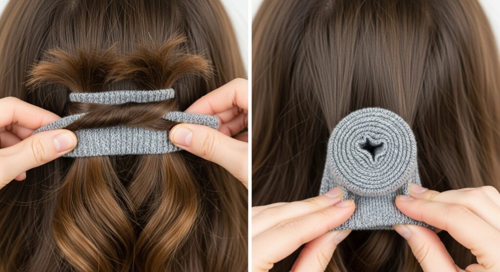 If you have very thick, long, or heavy hair, a single sock might not hold. The solution? Use two socks. Place one inside the other to create a stronger, thicker roller. This provides more support and holding power to set your curls effectively against the weight of your hair.