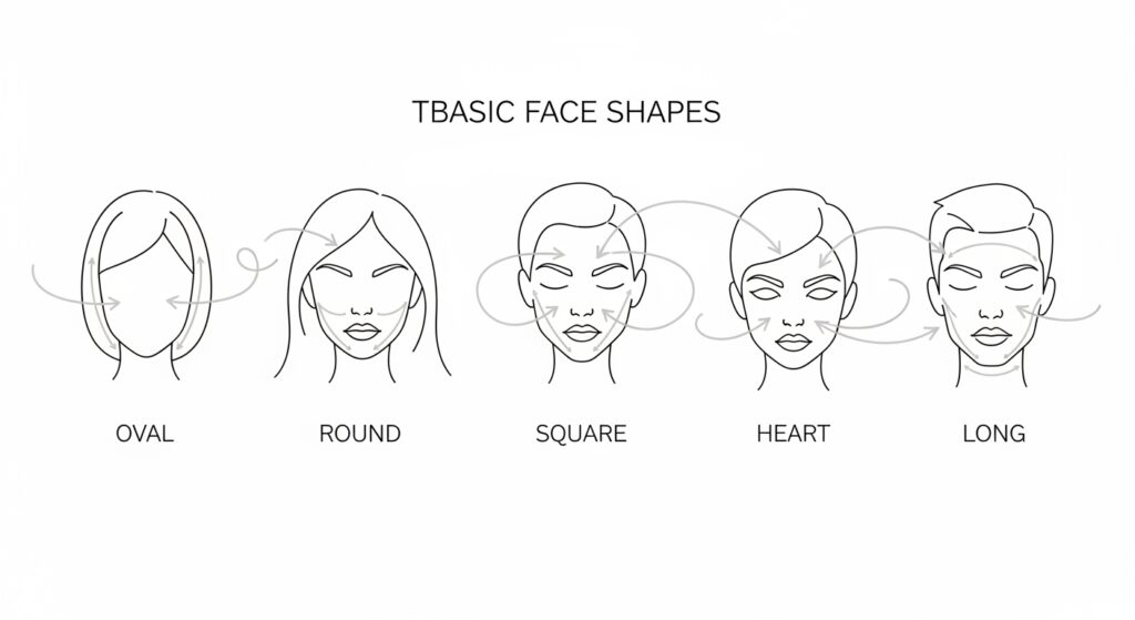 The first step is identifying your face shape. Pull your hair back and observe the outline of your face in the mirror. Note the width of your forehead, cheekbones, and jaw, as well as the overall length. Now, let’s find your perfect match.