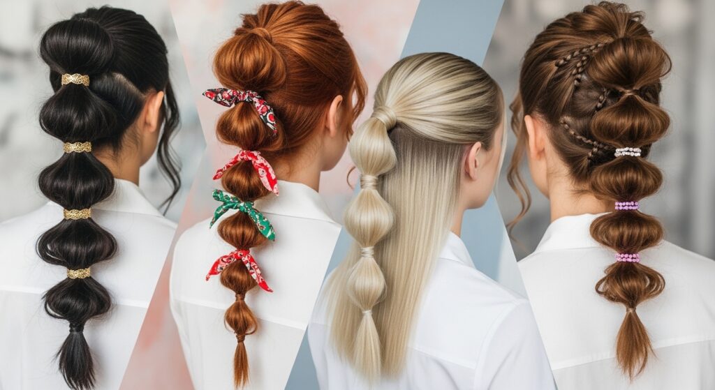 Before we dive into the avant-garde, let’s master the fundamentals with twists on the original. These styles build on the classic bubble ponytail for a polished yet upgraded look.