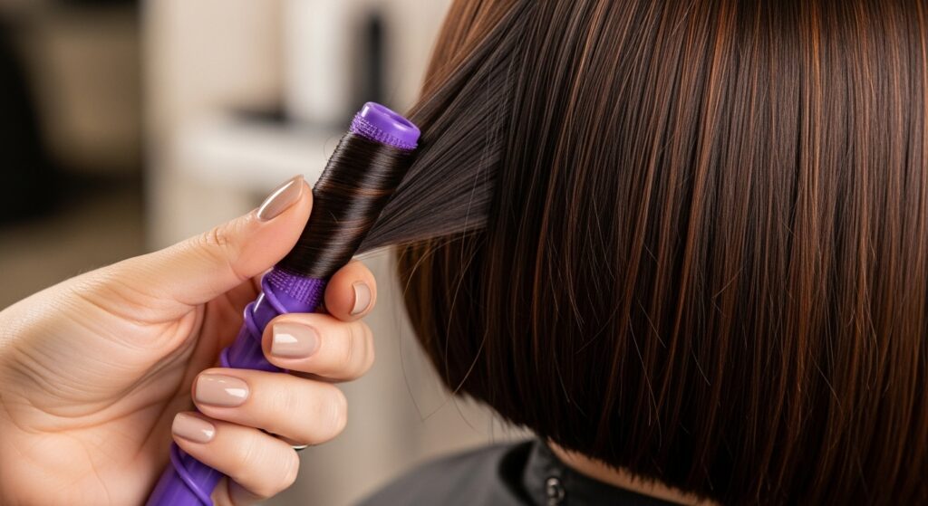 If you have a blunt bob or lob, avoid a “Christmas tree” shape by rolling the ends. When pulling your hair through the former, stop about 1-2 inches from the end. Then, manually roll the remaining end up onto the former before closing it. This ensures the very ends get curled under, creating a cohesive, rounded shape at your hemline.
