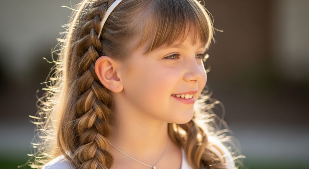 Braids symbolize purity and are a lovely, meaningful choice for a First Communion. They can be intricate or simple, but they always add a touch of fairy-tale charm.