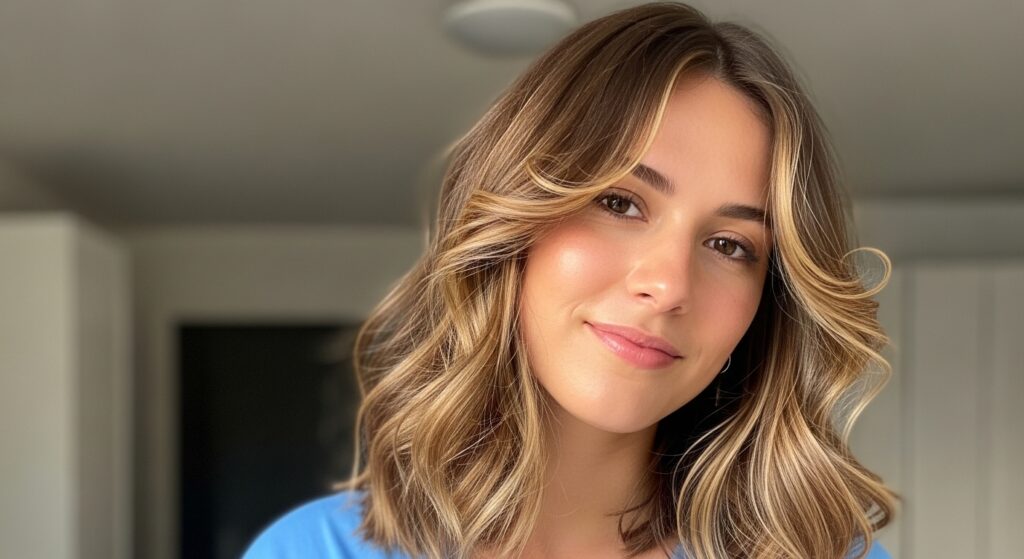 Straight hair can sometimes fall flat and create a stark line. Introducing soft waves or curls adds width and volume around the sides of your face. This outward movement balances vertical length and draws the eye outward, not upward.