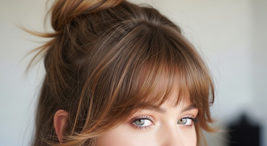 If you love the idea of fringe but want something softer than a blunt cut, wispy bangs are perfect. They allow the forehead to peek through, adding lightness and drawing the eye upward without creating a hard, horizontal line that can shorten the face.