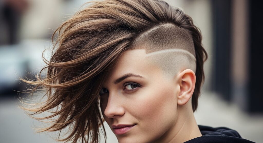 This edgy style involves shaving or closely cutting the sides while leaving a strip of longer hair down the center. For coverage, you can keep the sides slightly longer on one side and sweep the central hair over, creating an asymmetric look that is both protective and fashion-forward.