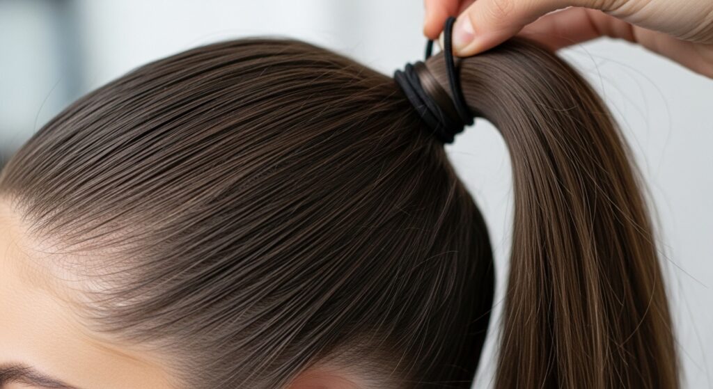 9. High, Sleek Ponytail: This is arguably the most effective long-hair style. Pulling hair tightly up and back, positioned high at the crown, completely exposes the neck and jawline. It’s clean, elegant, and creates an instant lift.