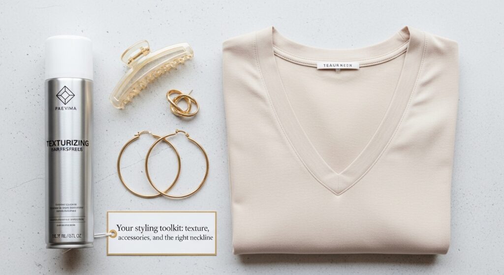 Bonus Tip: The Posture & Neckline Combo: Remember, your hairstyle works in tandem with your posture and clothing. Standing tall with shoulders back naturally elongates the neck. Pair your new hairstyle with V-neck, scoop-neck, or off-the-shoulder tops to continue the lengthening line from your face down your torso.