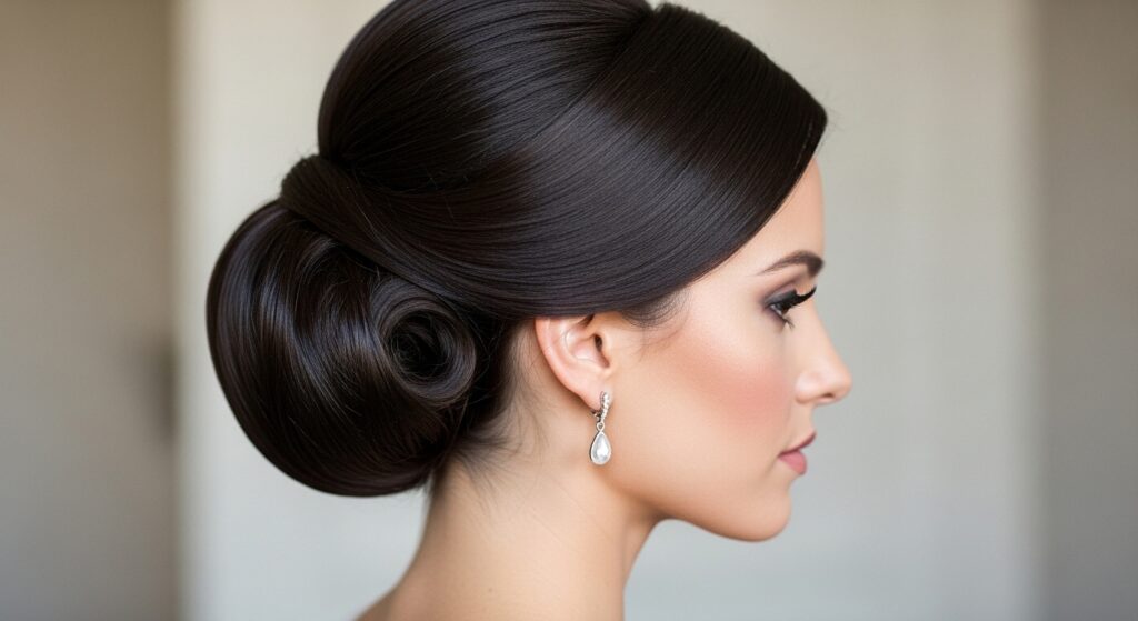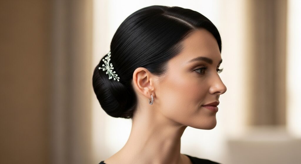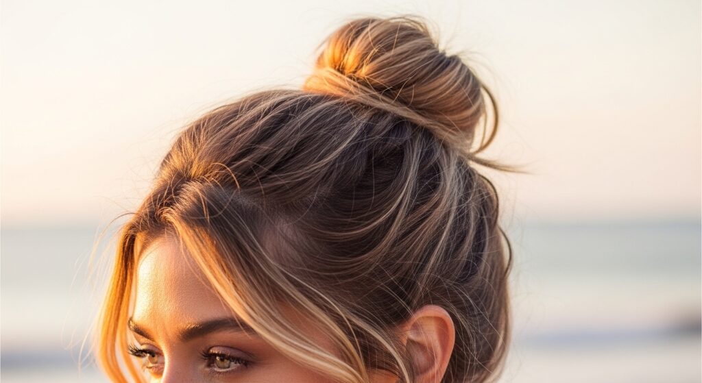 Designed to highlight your best features. Before making your bun, deliberately pull out your shortest face-framing layers. Secure the rest of the top section into a bun. Then, curl or style these front pieces to softly frame your cheeks and jawline. It’s a controlled yet soft look.