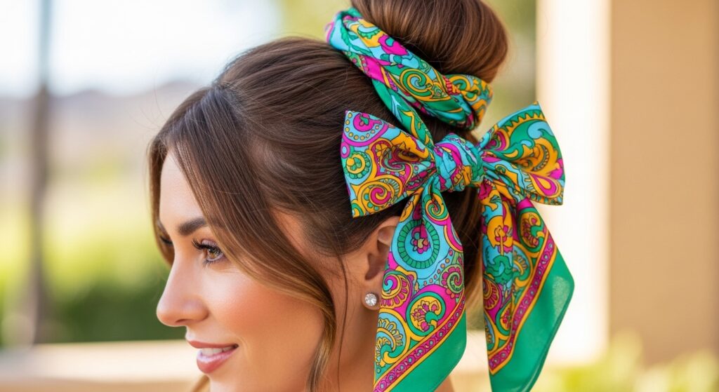 9. The Half-Up Bun with Scarf Accent