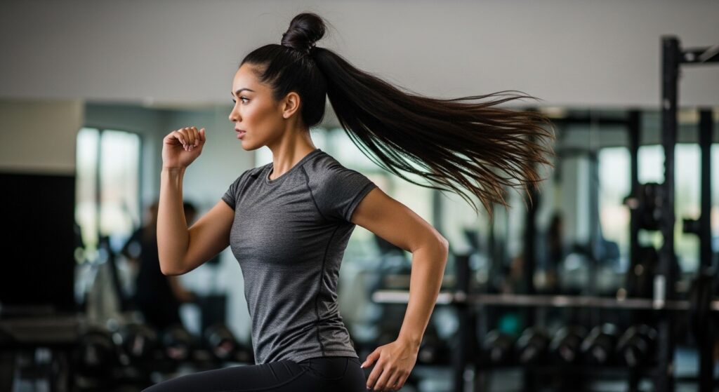 The quintessential athleisure style. Gather a top section of hair (from the crown forward) and twist it into a high, tight top knot. This style is ultimate for workouts, yoga, or hot days, as it removes hair from your entire face and neck while leaving the lower back hair down for style.