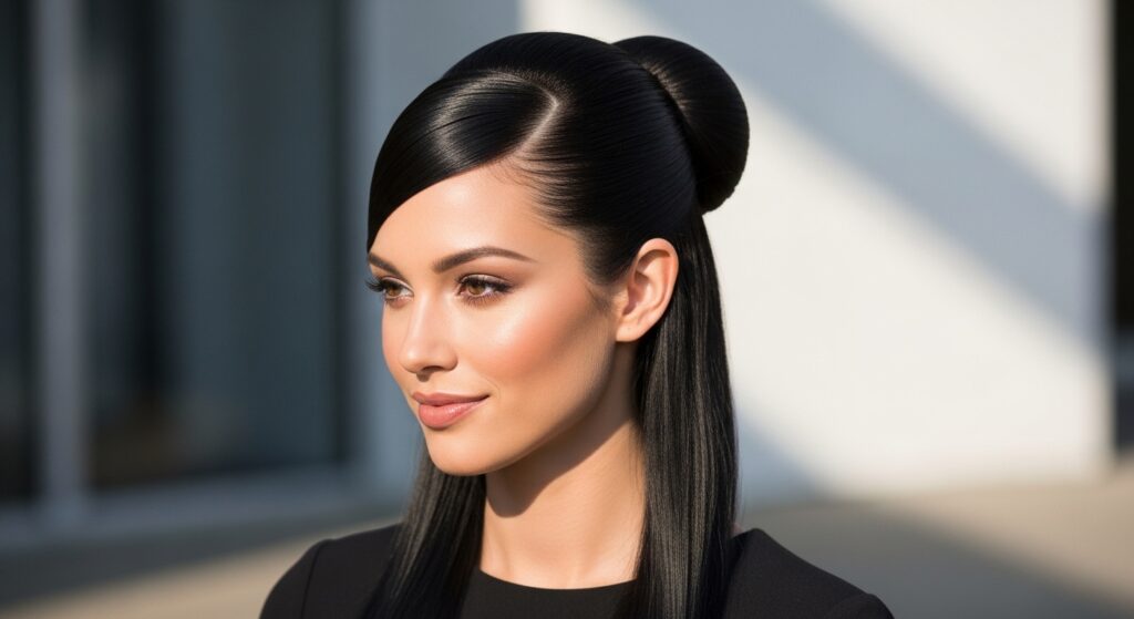 2. The Sleek & Polished Half-Up Bun