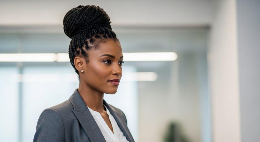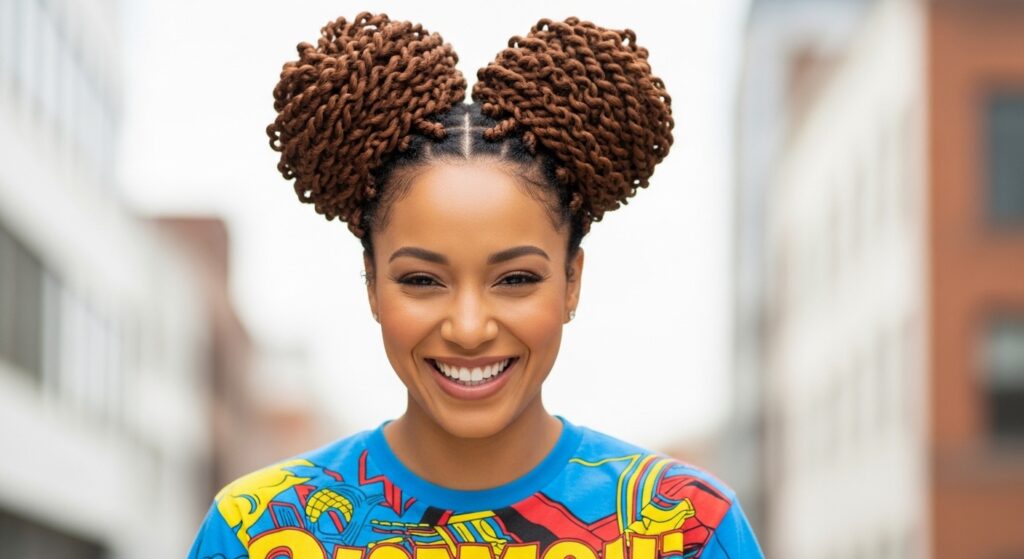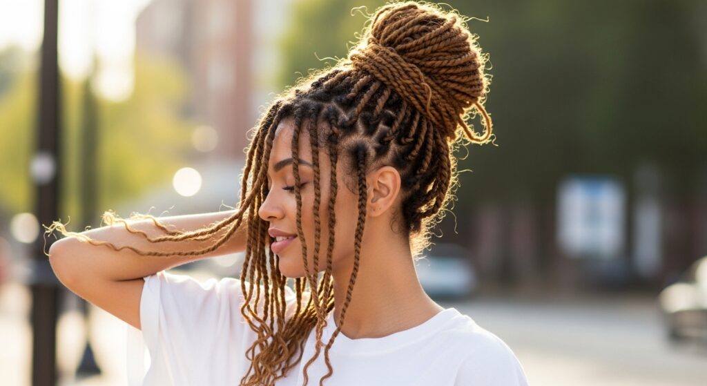 Don’t underestimate the power of a perfectly imperfect messy bun. Pull your twists up into a loose, textured bun at the nape of your neck or on top of your head. Gently pull out a few twists around your face and at the crown for a soft, romantic, and effortless look that’s both stylish and easy.