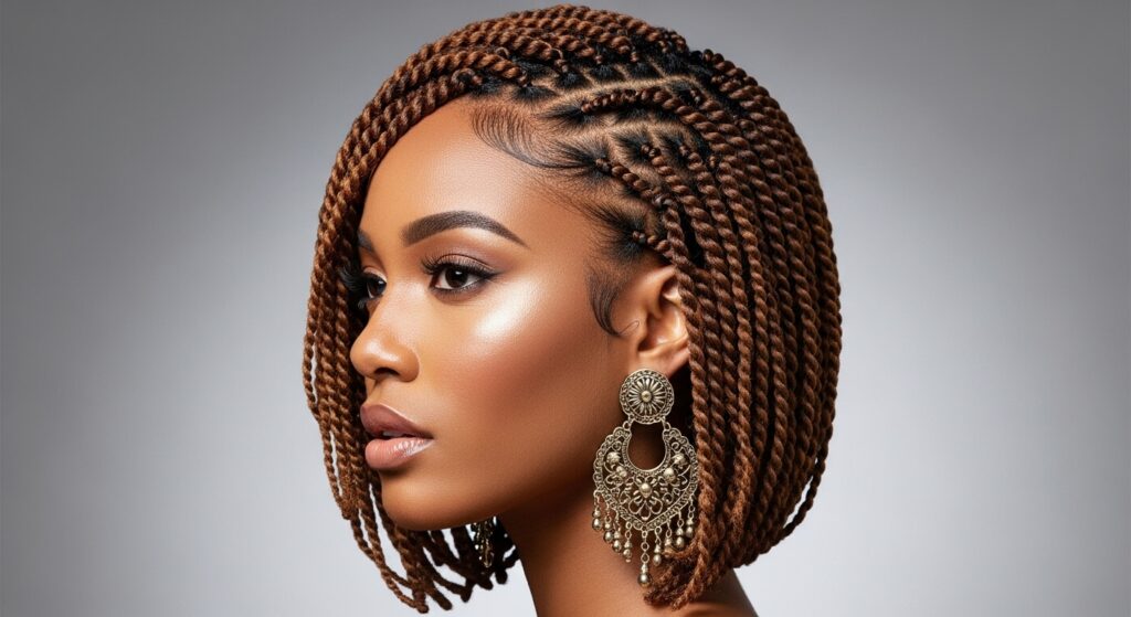 Who says twists have to be long? A chin-length Havana twist bob is the epitome of chic. It’s lightweight, low-fuss, and frames the face beautifully. This style is perfect for making a bold, fashion-forward statement while keeping things cool and comfortable.