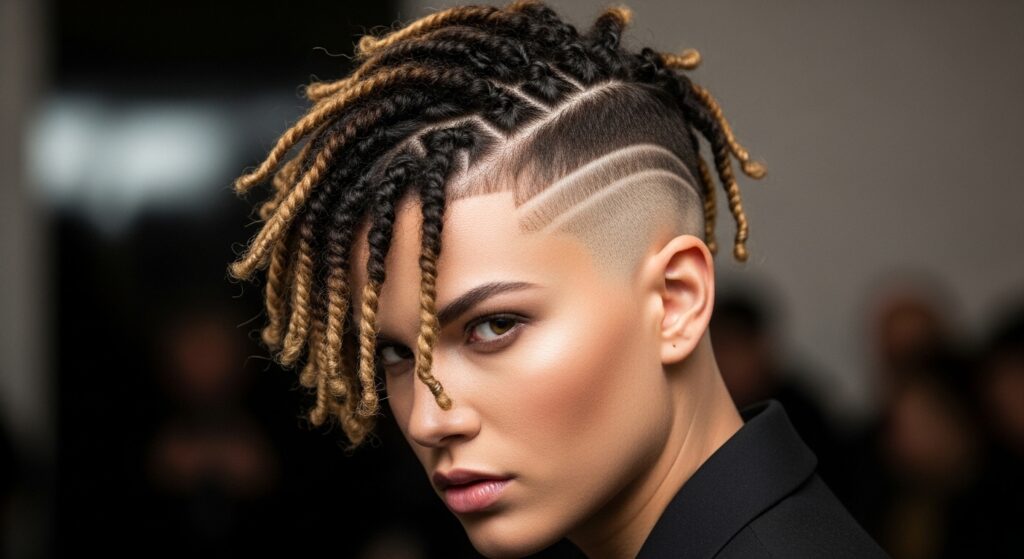 For an ultra-modern, edgy look, pair your Havana twists with a shaved or tapered side or back. This contrast between the fullness of the twists and the shaved skin is striking, bold, and highlights a daring sense of personal style.