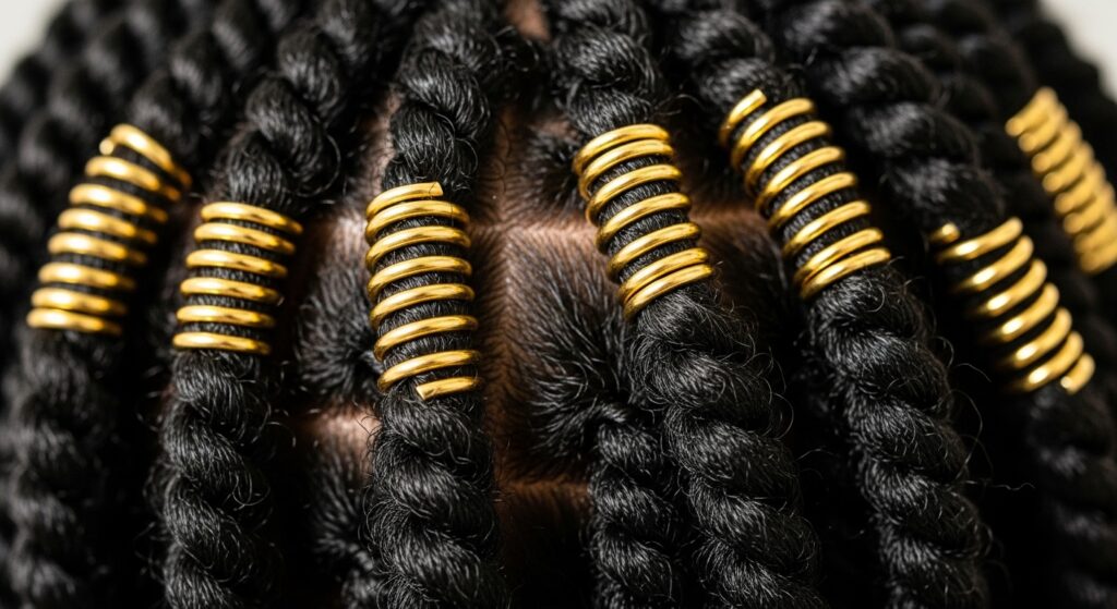 Elevate your twists with strategic accessories. Thread gold or silver cuffs onto individual twists, or weave in ribbons, beads, or pearls. A headscarf tied as a headband or a line of decorative hairpins can transform a simple style into a work of art.