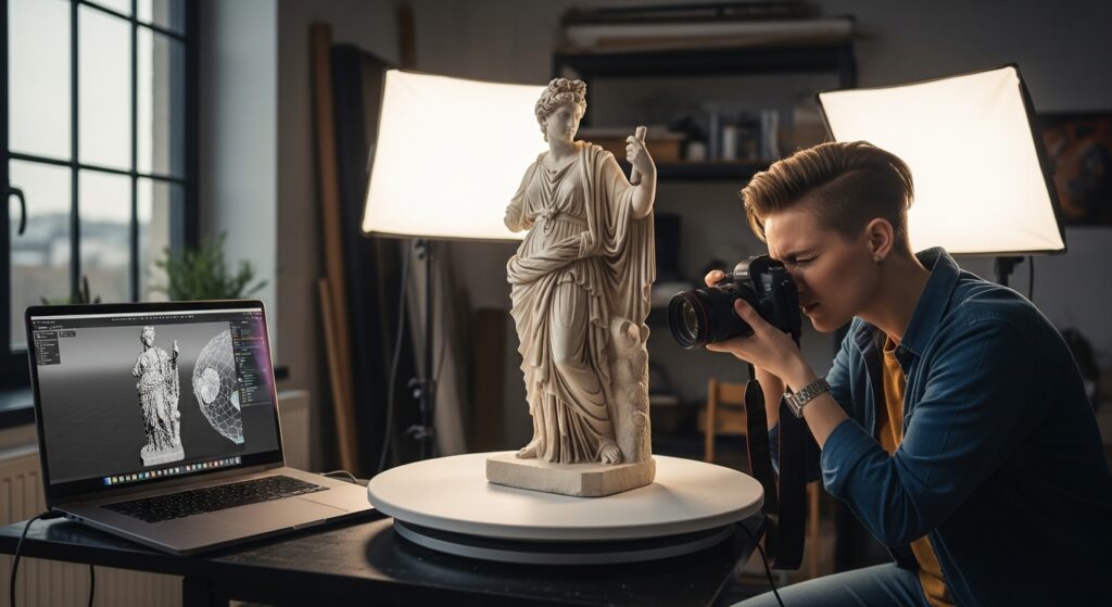 The foundation for realistic holograms is often a real-world object. Photogrammetry (taking many photos from all angles) and 3D scanning create ultra-detailed digital twins. These models can then be placed into AR, VR, or holographic displays, bringing a perfect, dimensional copy of reality into a new space.
