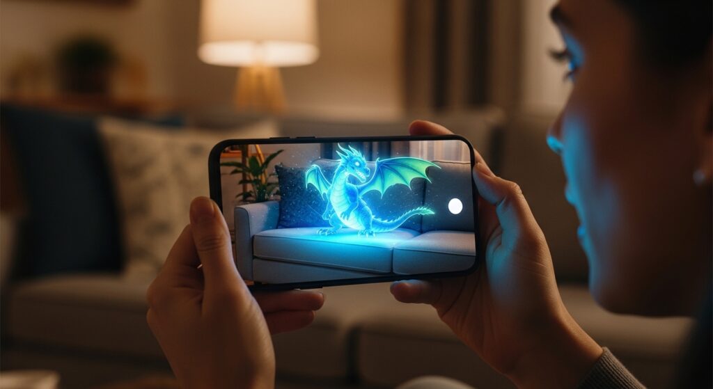 AR uses a device’s camera to anchor digital content—including 3D holographic models, animations, and information—onto the real world. Through phone screens or AR glasses, users can see and interact with multi-dimensional objects placed on their table, in their street, or on a product. This technique blends dimensions seamlessly.