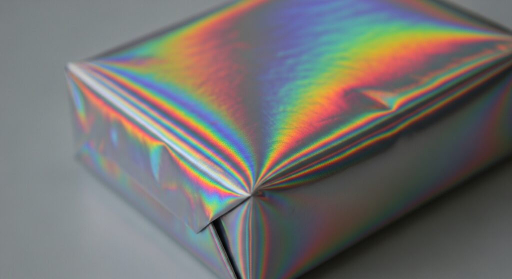 This accessible technique uses adhesive films or vinyl sheets with micro-prismatic surfaces. These materials diffract light, splitting it into its spectral colors and creating a shimmering, color-shift effect that changes based on the viewer’s angle. It’s widely used for packaging, stickers, security features, and fashion accents, providing an instant tactile and visual depth that flat printing cannot achieve.